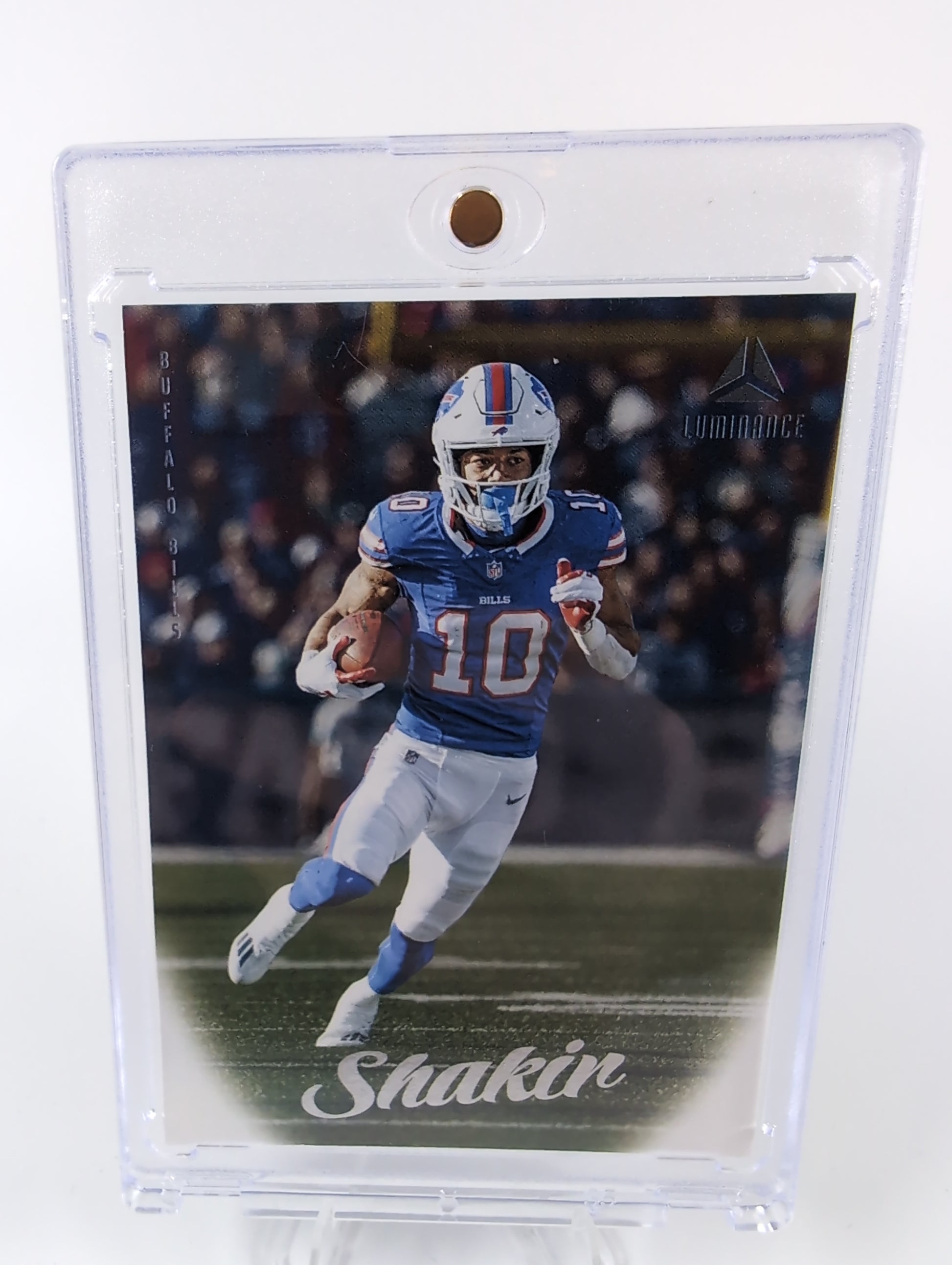 2025 Panini Luminance – Khalil Shakir #71 features the Bills’ emerging wide receiver in Luminance’s sleek full-bleed vertical design. The photography and modern card styling capture Shakir’s playmaking ability, making this base card a solid addition for collectors tracking Buffalo’s offensive stars.