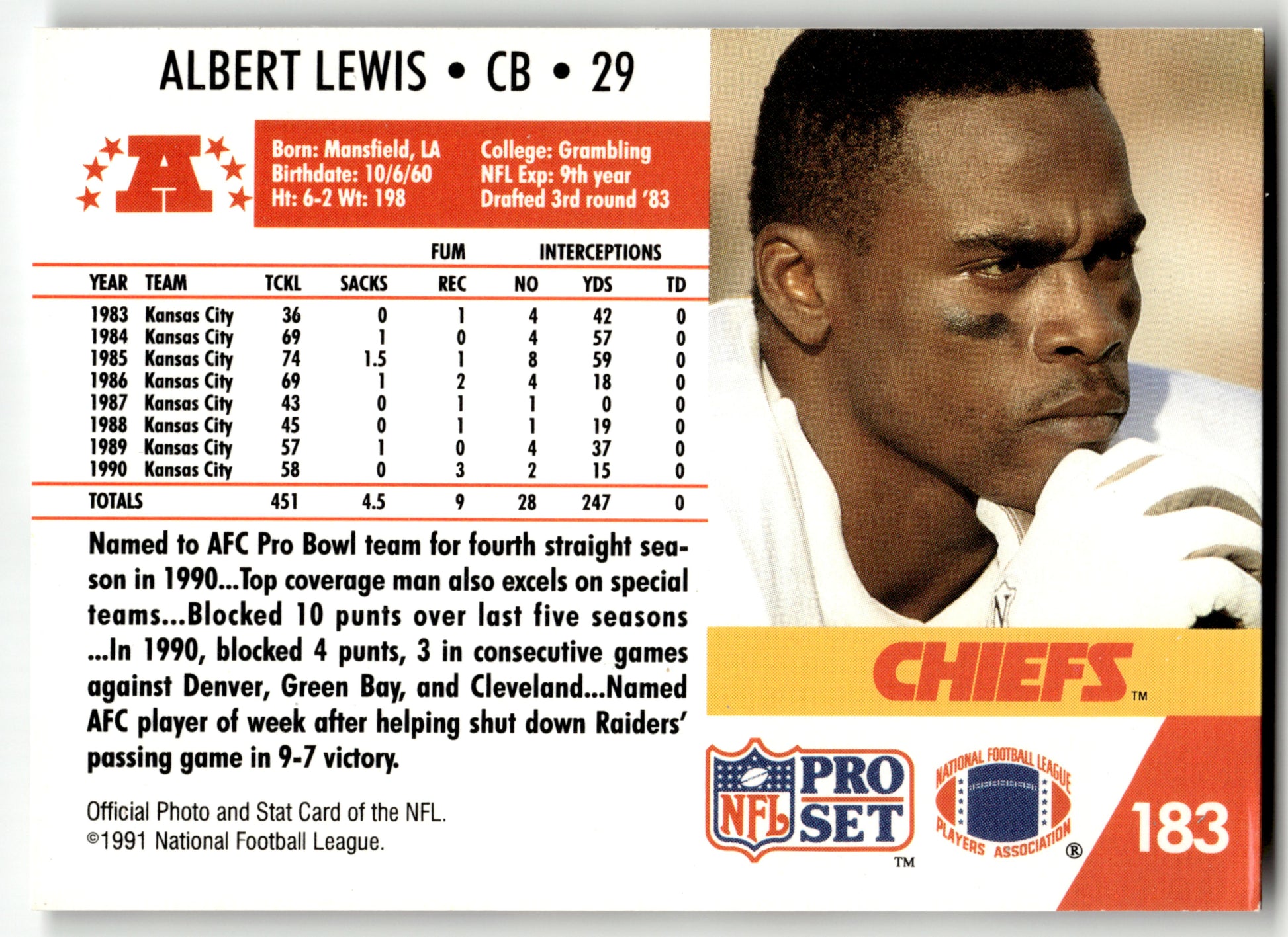 Card: Albert Lewis Team: Kansas City Chiefs Card No: #101 Set: 1991 Pro Set Spanish Year: 1991 Brand: Location: Assorted 001 001 001 E