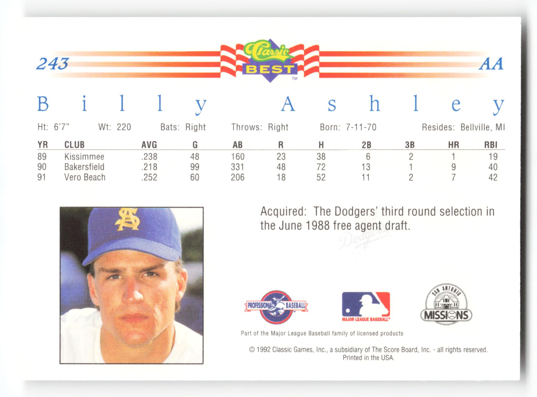 Billy Ashley - #243 - 1992 Classic Best - MLB