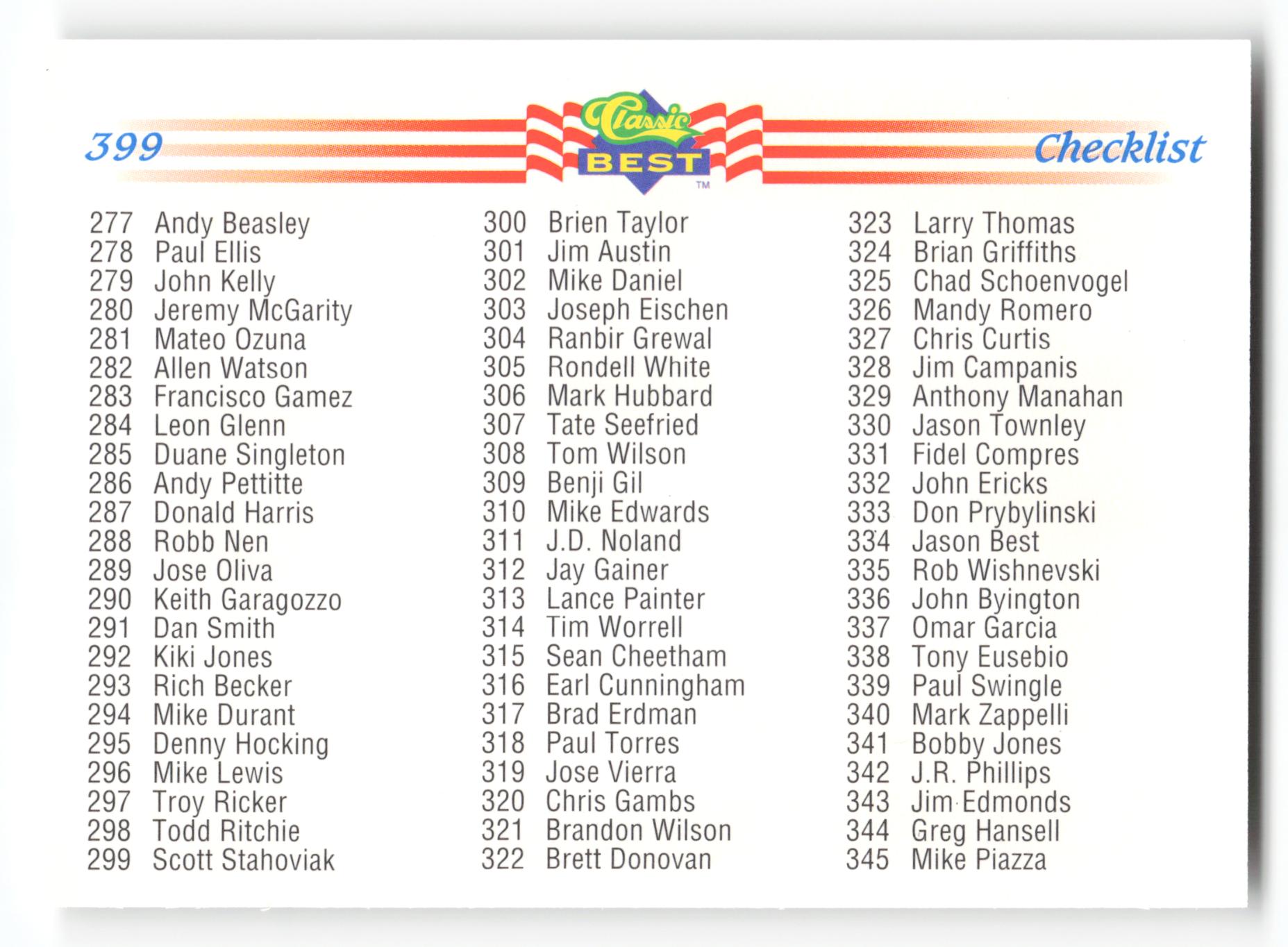 Checklist: 208-276 - #398 - 1992 Classic Best - MLB