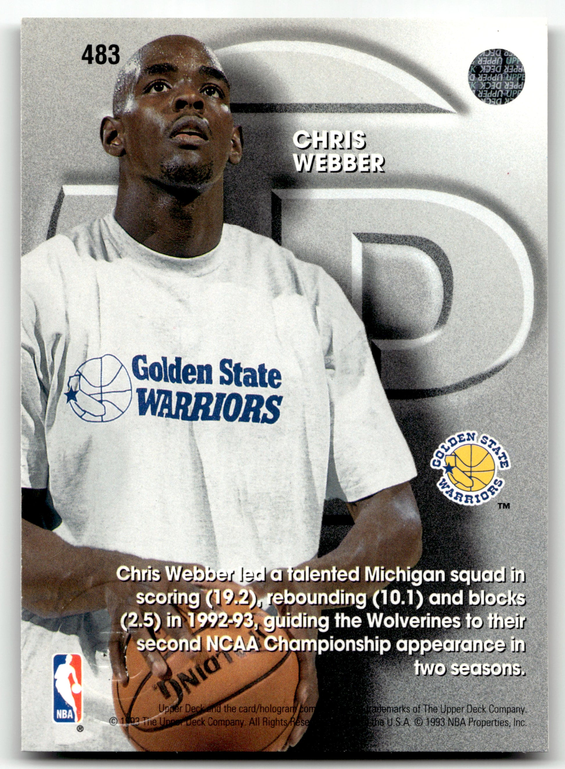 Card: Chris Webber Team: Golden State Warriors Card No: #483 Set: 1993-94 Upper Deck Year: 1993 Brand: Upper Deck Location: Assorted 001 1 1 A
