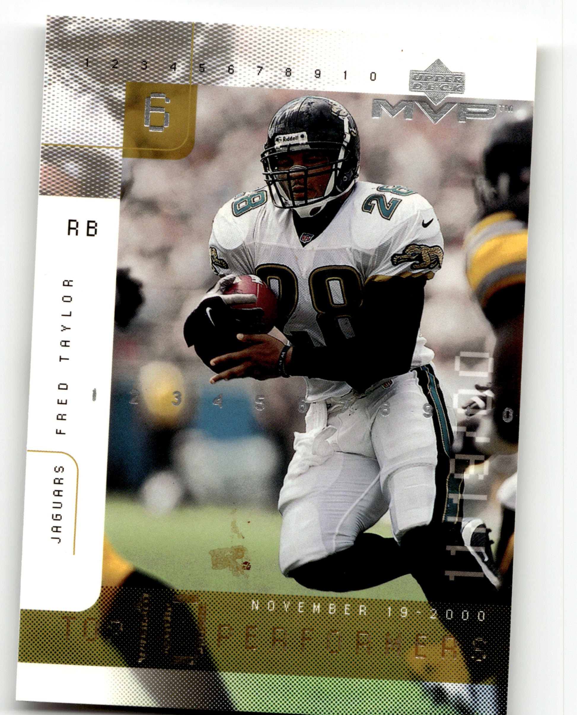 Card: Fred Taylor Team: Jacksonville Jaguars Card No: #TOP6 Set: 2001 Upper Deck MVP Year: 2001 Brand: Upper Deck Location: Assorted 001 1 1 A