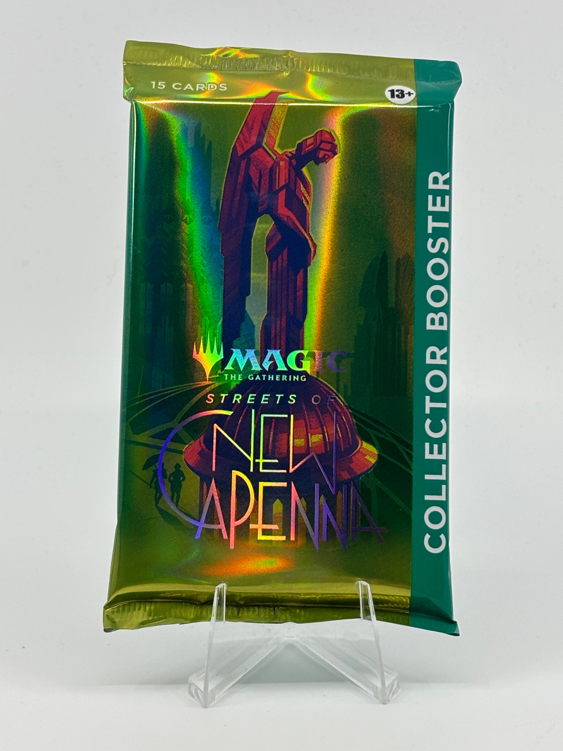 Magic: The Gathering – Streets of New Capenna Collector Booster Pack is built for collectors who want premium treatments and the highest-value pulls from the set. Each pack delivers a mix of foils, showcase frames, and rare exclusives that you won’t find in Draft or Set Boosters.