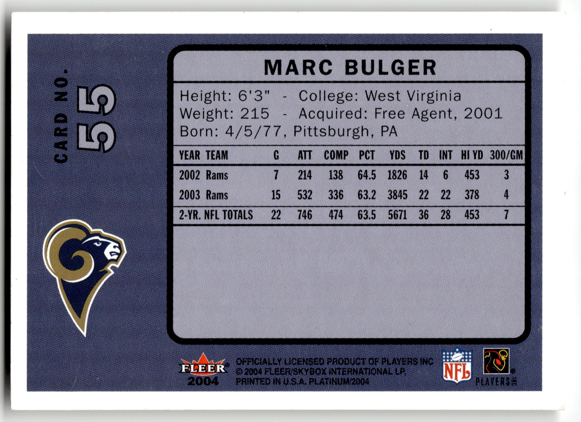 Marc Bulger - #55 - 2004 Fleer Platinum - Fleer