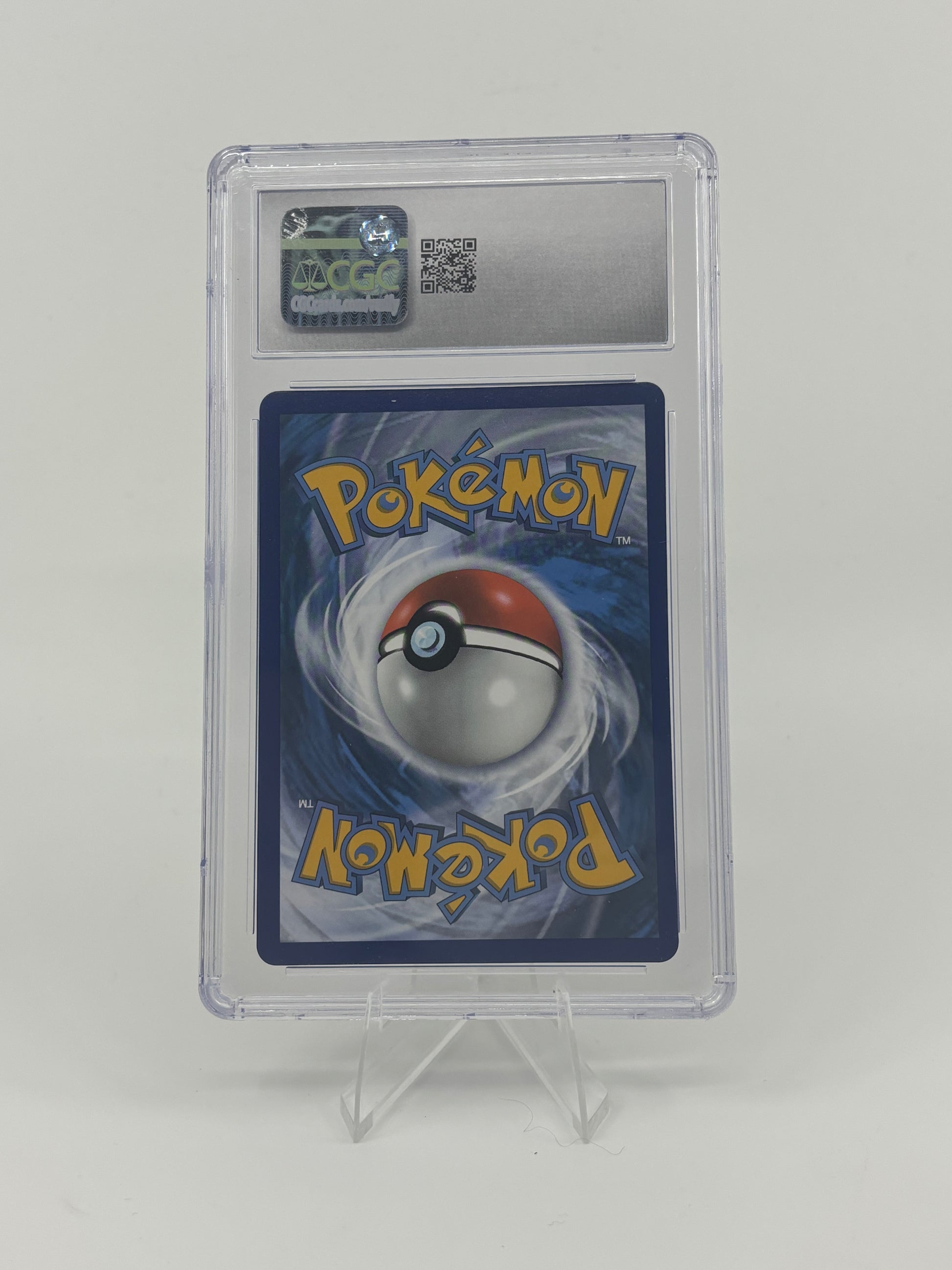 Graded CGC 10 (Gem Mint), this card displays flawless centering, sharp edges, and a crystal-clear holo surface—truly pristine in every aspect. The artwork captures Rayquaza’s immense power and elegance, making it a perfect representation of the fan-favorite Legendary.