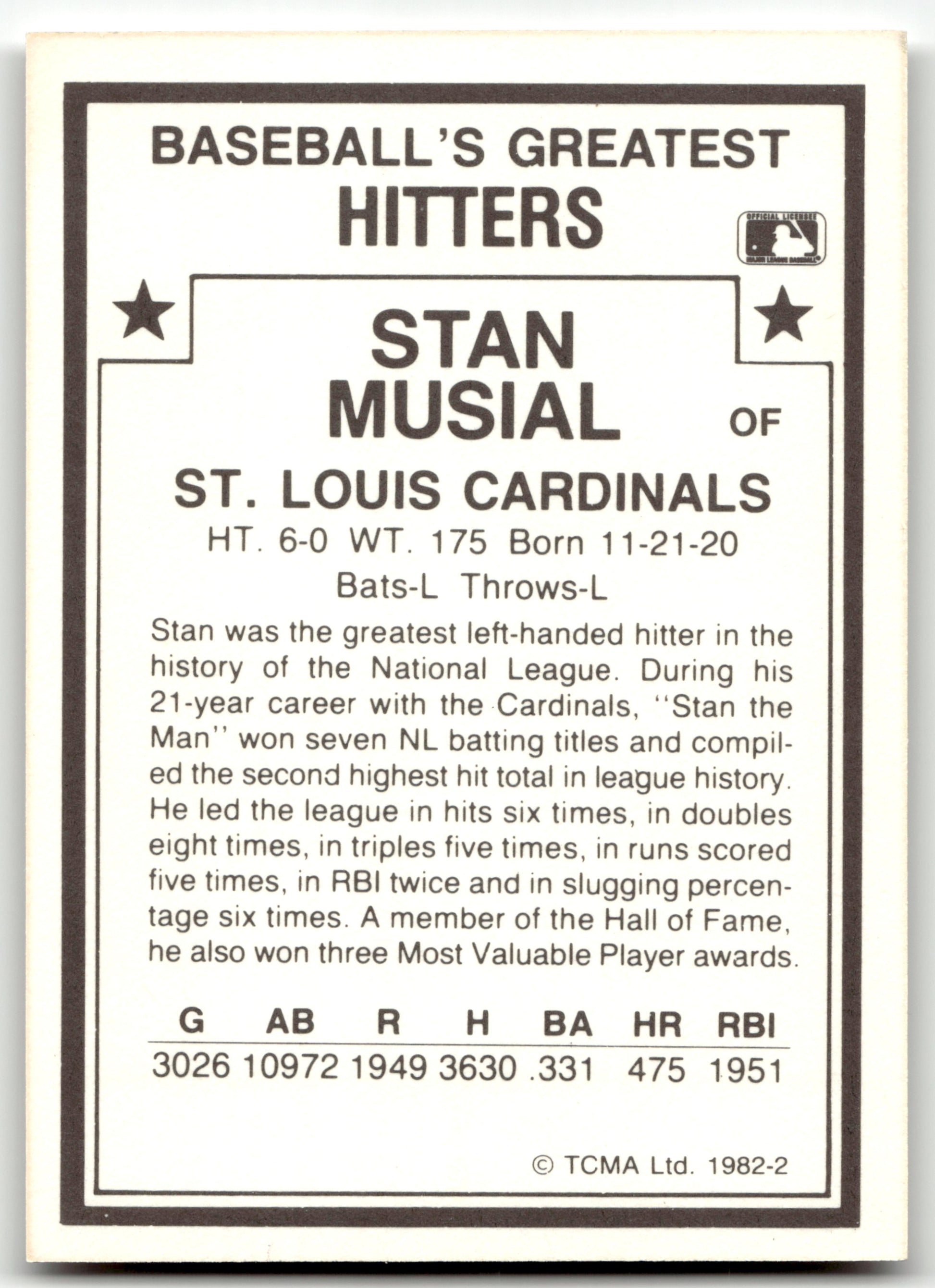 Stan Musial - #2 - 1987 TCMA 1982 Greatest Hitters - TCMA