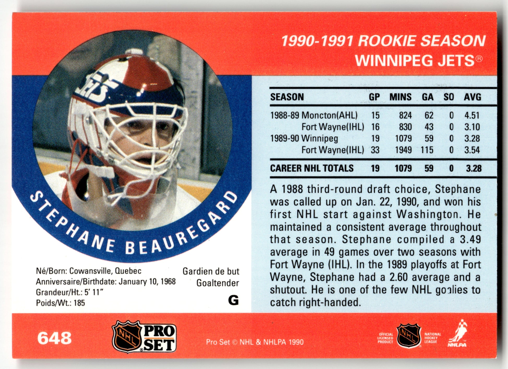 Card: Steph Beauregard Team: Winnipeg Jets Card No: #648 Set: 1990-91 Pro Set Year: 1990 Brand: Location: Assorted 001 001 001 G
