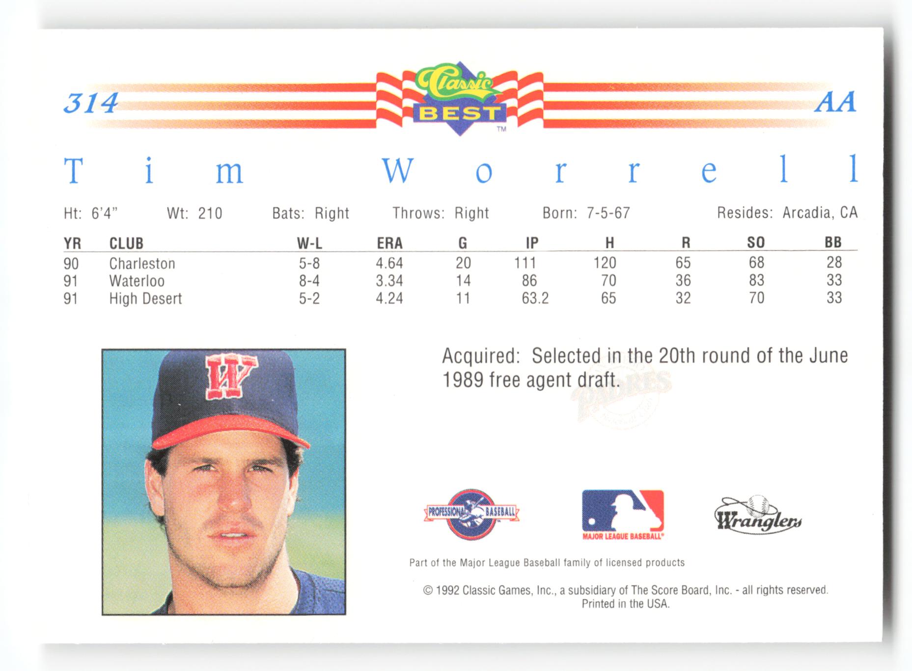 Tim Worrell - #314 - 1992 Classic Best - MLB