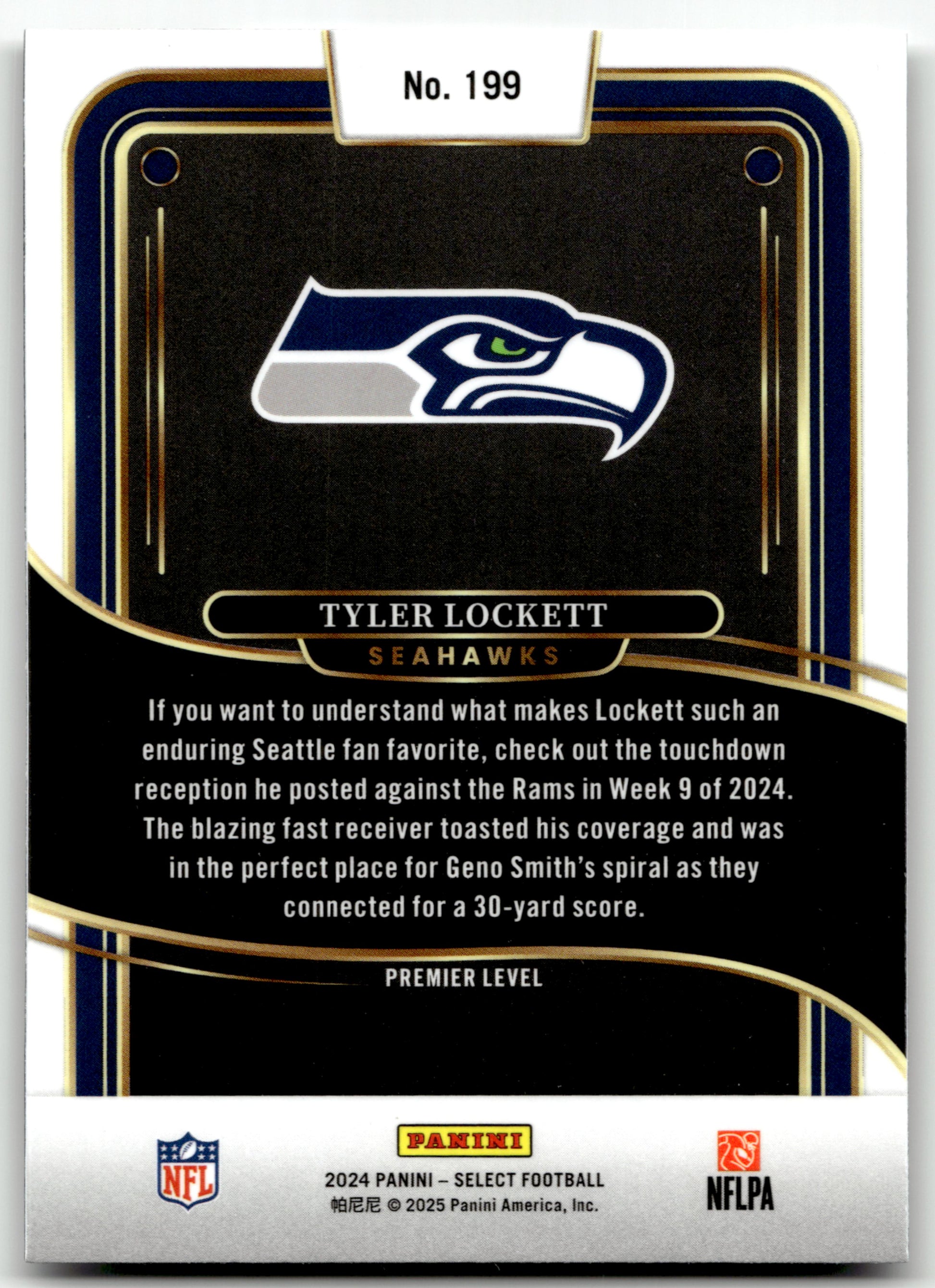 Card: Tyler Lockett Team: Seattle Seahawks Card No: #199 Set: 2024 Panini Select Year: 2024 Brand: Panini Location: Assorted 001 001 001 G